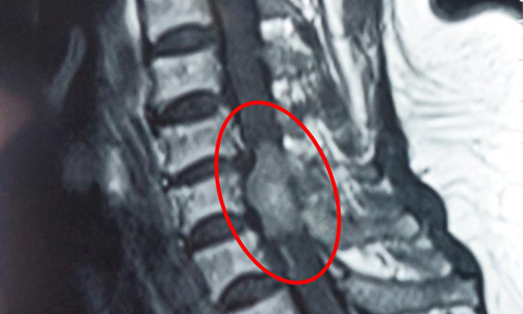Kết quả kiểm tra cho thấy, bệnh nhân có khối u rất lớn chèn ép vào tủy sống, phá hủy xương các đốt sống từ tháng 9 đến tháng 12.