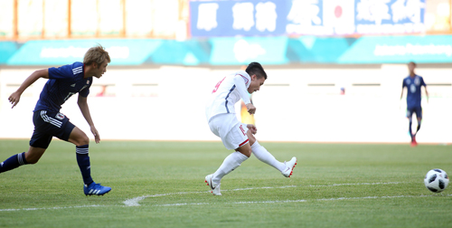 Quang Hải ghi bàn duy nhất, giúp Việt Nam đánh bại Nhật Bản 1-0 tại vòng bảng Asiad 2018. Ảnh: Lâm Thỏa.