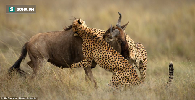 Báo săn thường phối hợp với nhau để hạ gục con mồi lớn. Ảnh: Barcroft Media