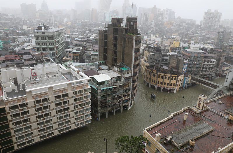 Bão Mangkhut tấn công Macau biến thành phố này chìm trong nước thành sông. Vì thế chính quyền thành phố này buộc phải đóng cửa tất cả 42 sòng bạc, khuyến cáo người dân ở trong nhà.