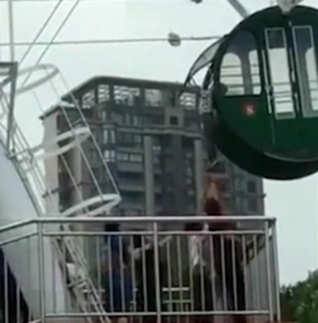 Ngay lúc này, không có ai bên cạnh để giải cứu cậu bé, mọi người chỉ còn biết thấp thỏm chờ đợi vòng đu quay từ từ hạ xuống. Và khi chiếc cabin của Xiaoliang về đến mặt đất, mọi người lập tức chạy đến để giải cứu cho cậu bé rồi đưa đến bệnh viện trong tình trạng cổ bị xây xát.