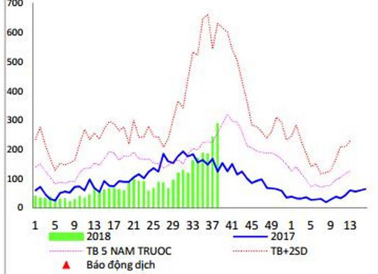 Theo thống kê mới nhất của Trung tâm Y tế Dự phòng TP HCM, tuần thứ 38 (từ 14 đến 20-9), số ca TCM nhập viện đã đạt mức cao nhất trong cả năm là 286 ca, tăng 47% so với thời điểm tháng trước, tuy nhiên tổng số ca nhập viện tích lũy trong năm 2018 vẫn thấp hơn 20% so với năm 2017, là 3.195 ca, so với 3.974 ca của năm 2017.
