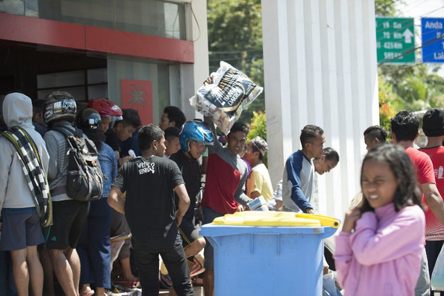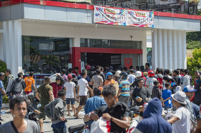 Trận động đất, sóng thần kinh hoàng ở Indonesia đã khiến hàng trăm nạn nhân buộc phải đổ xô tới các siêu thị và trạm xăng để lấy lương thực và nhiên liệu do không còn lương thực để duy trì sự sống.