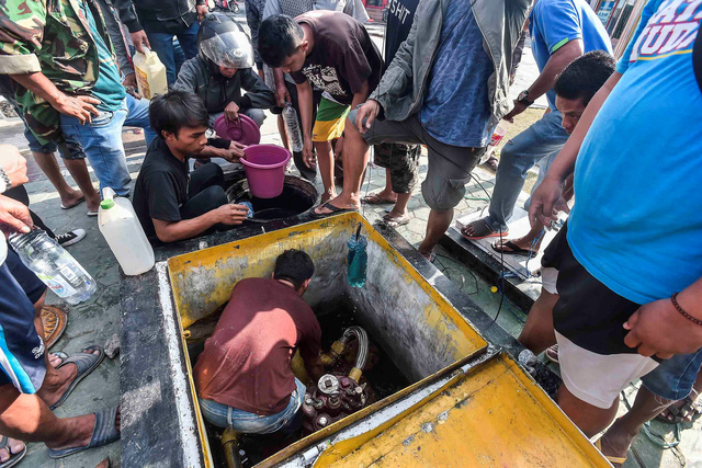 Ngoài siêu thị, cảnh tượng tương tự cũng diễn ra tại một trạm xăng khi đám đông tìm cách lấy xăng từ một bể dự trữ ngầm. (Ảnh: Reuters)