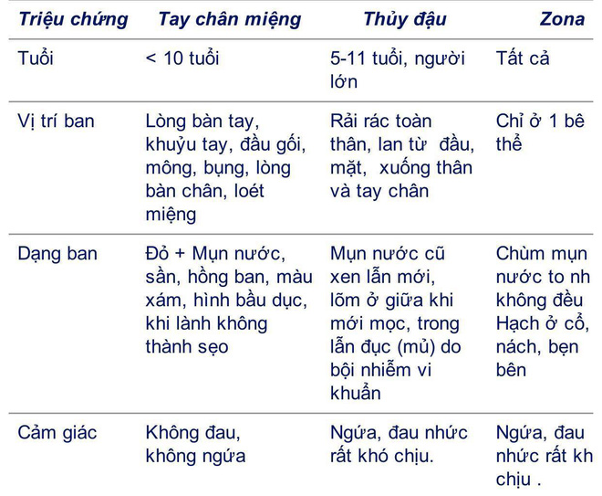 Bảng phân biệt triệu chứng của bệnh tay-chân-miệng với các bệnh khác