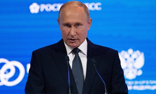 Tổng thống Nga Vladimir Putin tại diễn đàn về năng lượng tổ chức ở Moskva ngày 3/10. Ảnh: Sputnik.