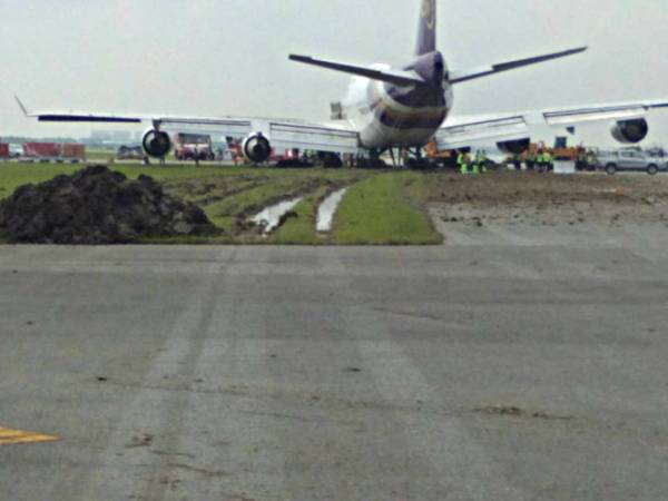Máy bay mang số hiệu TG679 chở 97 hành khách và 18 phi hành đoàn đã trượt khỏi đường băng và lọt thỏm vào vùng đất sình lầy, khiến máy bay gần như đâm đầu xuống đất nếu cơ trưởng không kiểm soát kịp thời.