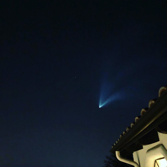 Trong khi đó, cư dân mạng @colleen_huttner nghĩ rằng đó là UFO đến thăm loài người nhưng sau nhận được thông báo tên lửa của Công ty SpaceX vừa được phóng.