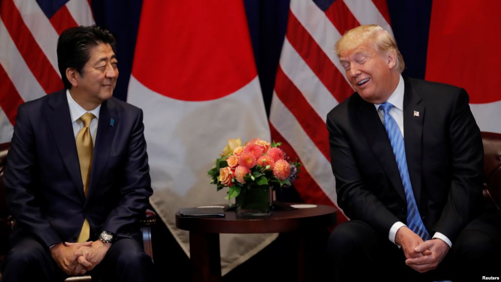Tổng thống Mỹ Donald Trump và Thủ tướng Nhật Shinzo Abe trong cuộc họp tay đôi bên lề phiên họp thứ 73 của Đại hội đồng Liên hiệp quốc tại New York, ngày 26/9/2018.