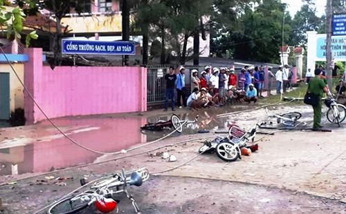 Old  Default Long An: 6 học sinh đứng gần cổng trưởng bị điện giật, 2 em chết thảm