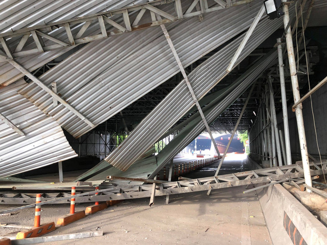 Ghi nhận của PV tại hiện trường, hệ thống giàn giáo đổ sập, chắn cả 2 làn ra vào hầm phía quận 2. Có 1 chiếc xe máy của người dân tại hiện trường nhưng chưa rõ số người thương vong.