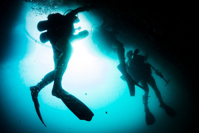 Các thợ lặn Hải quân Mỹ kiểm tra tàu tại cảng Apra.