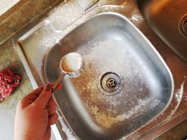 Bồn rửa mặt lâu ngày bám bẩn và rất khó làm sạch? Hãy thử rắc baking soda lên bề mặt bồn khi vẫn còn ẩm. Sau đó dùng miếng bọt biển tẩm oxy già, và dùng nó để lau bồn nhẹ nhàng.