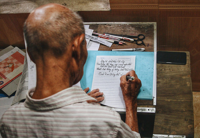 “Ban đầu tôi cũng lo không biết cụ có đủ sức khỏe, minh mẫn để theo học không nhưng đến giờ thì rất bất ngờ vì cụ bắt nhịp rất nhanh. Cụ đi học rất đúng giờ, chăm chỉ và rất ít nghỉ học. Trong lớp, cụ cũng hay giơ tay phát biểu, giọng nói của cụ to, rõ ràng, chữ viết đẹp, văn phong mạch lạc”, cô Hải nhận xét.