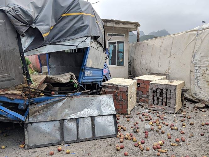 Sau va chạm, xe ô tô đầu kéo bị lật sang bên phải, xuống vỉa hè va chạm với xe tải 14c-24431 đang đỗ bên đường (hướng HL-CP). Ở gần xe tải có 1 người dân và 2 công nhân đang trồng cây (đi xe tải 14c -24431). Vụ tai nạn khiến 1 người chết tại chỗ, 2 người bị thương nặng. Rất may, tất cả hành khách trên xe khách an toàn.