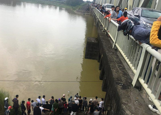 Hàng trăm người dân đã vây kín cầu Hàm Rồng xem lực lượng cứu hộ tìm kiếm nam sinh nhảy cầu