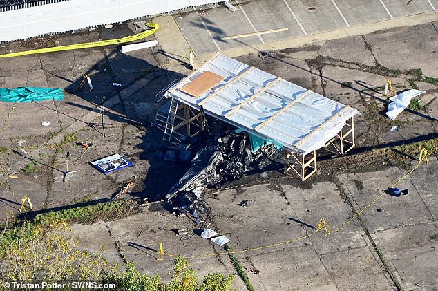 Các điều tra viên đang tìm hiểu nguyên nhân vụ tai nạn từ xác máy bay đã cháy đen vì rơi và phát nổ (Ảnh: SWNS)
