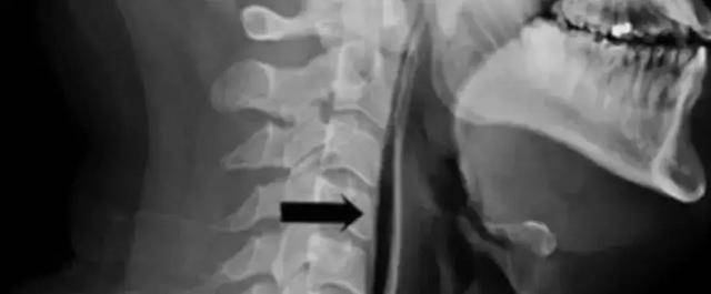 Bóng được chỉ định bởi mũi tên màu đen là không khí xâm nhập vào mô mềm của cổ