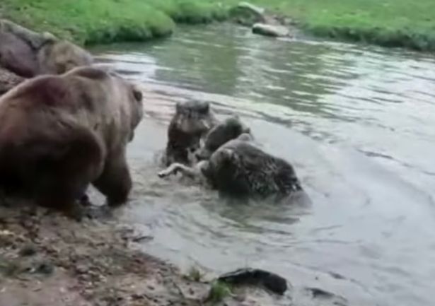 Theo Mirror, các nhân viên vườn thú không làm cách nào cứu được con sói, khi nó vô tình rơi xuống nước, lãnh địa của một gia đình gấu.