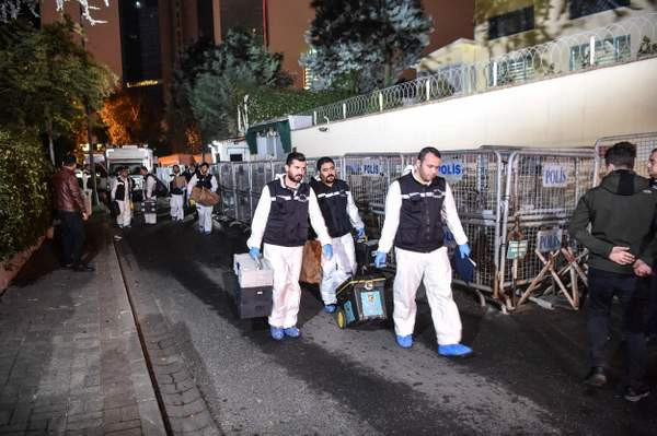 Nhóm pháp y Thổ Nhĩ Kỳ khám xét lãnh sự quán Saudi Arabia ở Istanbul hôm 15/10. Ảnh: AFP.