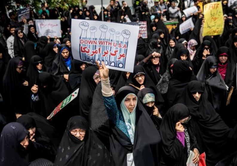 Phụ nữ Iran biểu tình tại thủ đô Tehran vào hôm 11.5.2018 để phản đối quyết định rút Mỹ khỏi JCPOA của Tổng thống Donald Trump. Ảnh: Reuters.