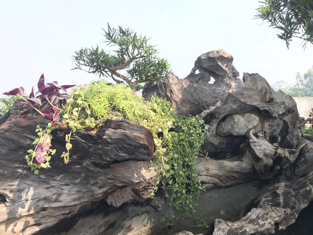 Lang thang ngắm nghía cây cối tại khu trưng bày sinh vật cảnh tại Long Biên (Hà Nội), phóng viên không khỏi choáng ngợp bởi một “con thuyền cây” rất lớn.