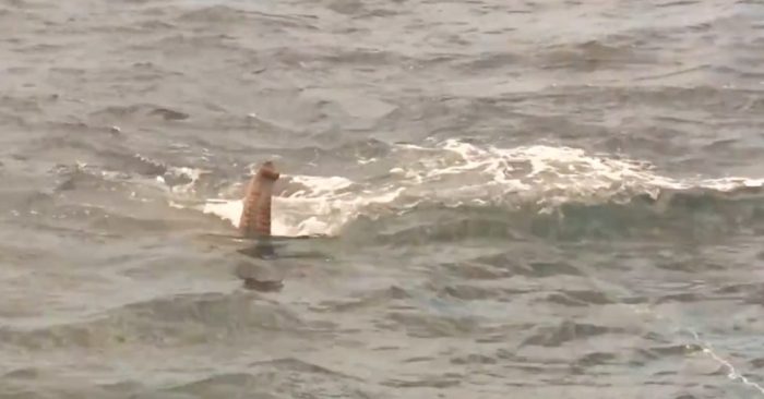 Con vật tội nghiệp cố vươn chiếc vòi lên khỏi mặt nước để hít thở, nhưng điều này không đơn giản khi sóng biển liên tục làm nó mất thăng bằng và chao đảo dưới làn nước. Vào lúc những người lính hải quân nhìn thấy, con vật dường như đã khá mệt mỏi và có nguy cơ bị chết đuối nếu không thể cầm cự lâu hơn.