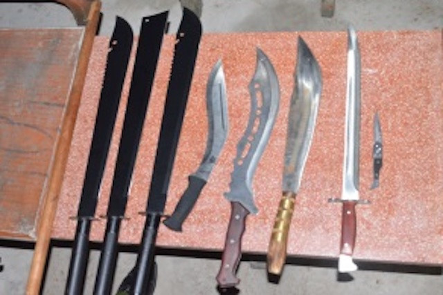 Số hung khí được cảnh sát thu giữ. Ảnh: Công an Trà Vinh.