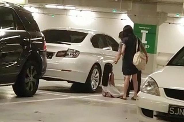 Video được tờ Stomp của Singapore đăng tải hôm 7/11 cho thấy bé gái quỳ bên cạnh một chiếc xe màu trắng tại bãi đỗ xe của nhà bán lẻ nội thất IKEA ở Tampines, Singapore.