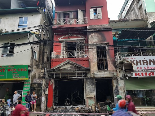 Tại hiện trường, ngôi nhà bốn tầng kinh doanh cà phê bị cháy rụi tầng một và hai. Phía ngoài cửa, ba bình gas và một xe máy bị cũng bị cháy. Đường dây điện đi ngang qua và biển quảng cáo của cửa hàng bên cạnh bị hư hại. Giao thông qua khu vực này bị ùn ứ vào giờ cao điểm sáng.