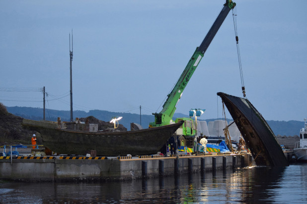 Nhật Bản trục vớt một con tàu ở cảng Wajima