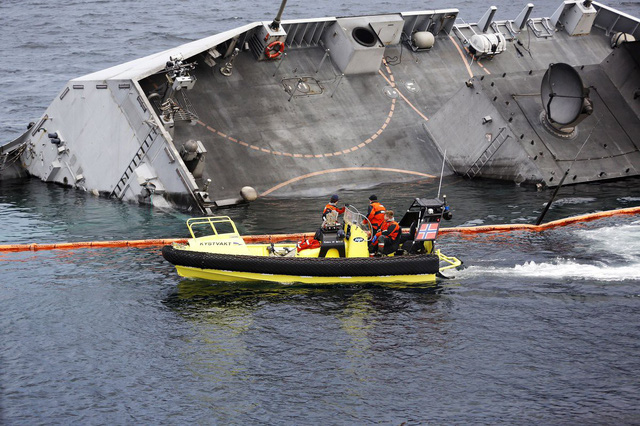 Sau 5 ngày va chạm với một tàu chở dầu, bất chấp nỗ lực của lực lượng cứu hộ nhưng tàu hộ vệ KNM Helge Ingstad của Hải quân Na Uy chìm gần như hoàn toàn.