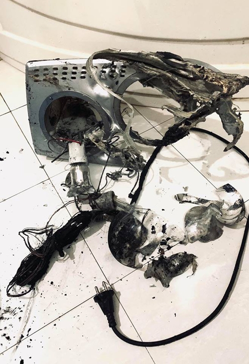 Tối 14/11, khi đang đang trong nhà tắm, chị Hà Lan nghe tiếng tách tách phát ra từ chiếc đèn sưởi. Khi thấy đèn lóe lửa, chị chạy vội ra ngoài ngắt cầu giao nhưng lúc trở lại thì thiết bị này đã bốc cháy, bắn ra các tia lửa đỏ rực như pháo hoa. Khói từ chiếc đèn sưởi bốc nghi ngút, mùi nhựa cháy khét và các miếng nhựa nóng bắn ra dính vào mặt, lưng chồng và bố chồng chị Hà Lan, gây bỏng. Sau đó đám cháy được dập tắt bằng nước từ vòi xịt nhà vệ sinh và vòi hoa sen.