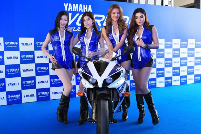 Môtô Yamaha tuyệt đẹp hơn khi có dàn người mẫu cực gợi cảm. Các nàng với làn da trắng muốt, các số đo hoàn mỹ. Họ tạo dáng bên xe Yamaha khiến phái mạnh đứng hình.