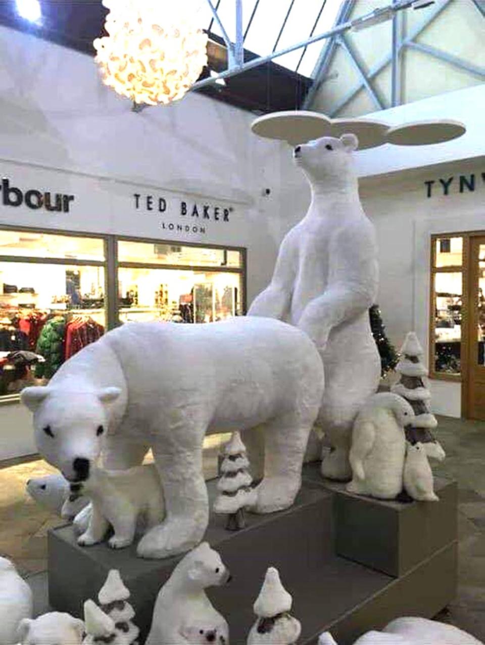 Chủ trung tâm mua sắm ở Đảo Man, một vùng đất tự trị, nghĩ rằng mô hình gấu Bắc Cực sẽ khiến khách hàng thích thú. Nhưng khách hàng đã đỏ mặt khi thấy tư thế của hai con gấu.