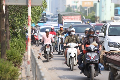 Hà Nội lập rào chắn ngăn dòng người đi xe máy lên vỉa hè. Nhiều người bất chấp vi phạm luật vẫn đi ngược chiều. Trước khi có hàng rào chắn ngang, họ phi xe lên vỉa hè đi để thoát khỏi cảnh tắc đường.
