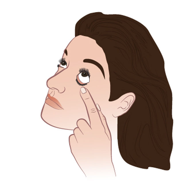 Ngửa mặt lên trời hoặc nằm thẳng lưng để tăng tỷ lệ nhỏ trúng mắt sau một lần bóp. Sau đó, kéo nhẹ mi dưới tạo thành một cái túi nhỏ. Động tác kéo mi dưới sẽ làm tăng tiết diện bề mặt và giọt nước được giữ lại trong mắt, thay vì văng ra ngoài.
