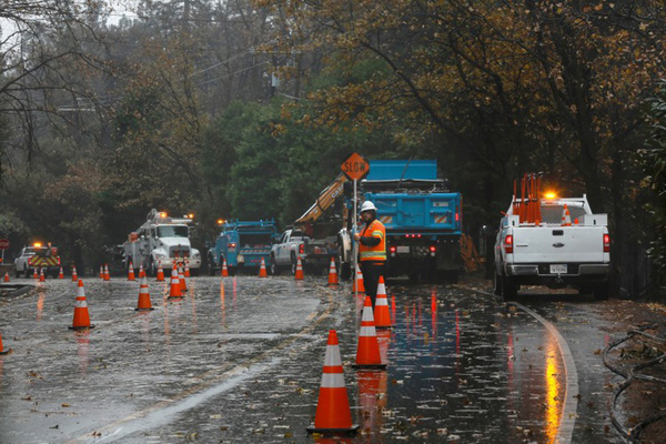 Nhân viên của PG&E sửa chữa thiệt hại do vụ cháy rừng Camp Fire gây ra ở Paradise, California, Mỹ vào ngày 21/11/2018. Ảnh: Elijah Nouvelage