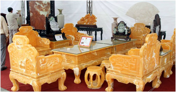 Tại triển lãm, đã thu hút tầm mắt của nhiều khách tham quan bộ bàn ghế được chế tác từ 50 tấn ngọc Hoàng Long nhập từ Trung Mỹ, do 10 người làm trong vòng 1 năm mới hoàn thành có trị giá lên tới 8 tỷ đồng, khiến bộ bàn ghế làm bằng đá quý này được đánh giá là “có một không hai” tại Việt Nam.