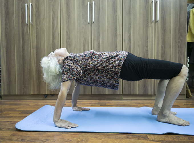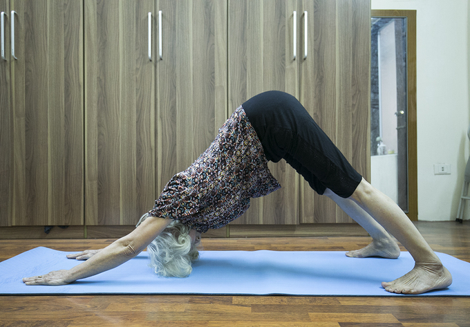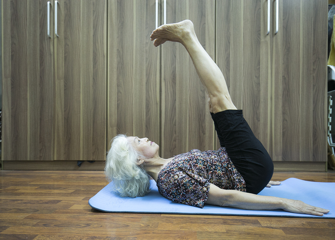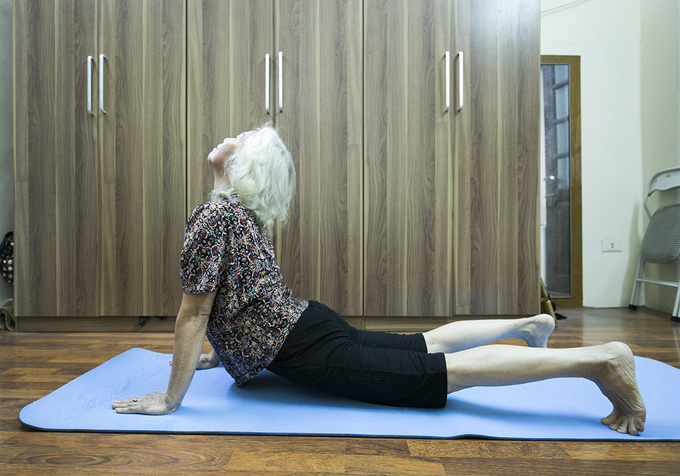 Cụ bà Hà Nội 20 năm tập 5 thức yoga Tây Tạng. 5 động tác yoga chỉ mất 15 phút tập luyện. Bà Hồng tập luyện những động tác này để rèn luyện sức khỏe.