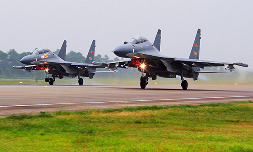 Tiêm kích Su-30 của Trung Quốc cất cánh bay tuần tra tháng 6/2016. Ảnh: AP.