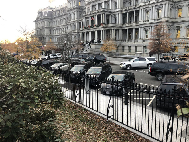 Dàn xe hộ tống Tổng thống Trump từ Nhà Trắng sang nhà khách chính phủ. Ảnh: Twitter