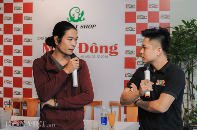Anh Nghĩa (bên trái), chủ nhiệm CLB Bò sát Hà Nội cho biết, bò sát được chọn làm thú cưng rất đa dạng, nào là rùa, trăn, rắn…nhưng có một nguyên tắc mà CLB của anh và nhiều hội nuôi bò sát khác đều phải tuân thủ, đó là chỉ nuôi những loài không có nọc độc và không có tên trong Sách Đỏ.