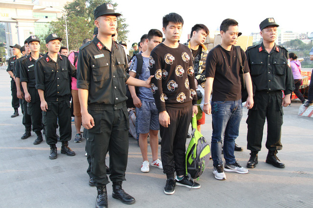 Công an tỉnh Lào Cai bàn giao các đối tượng cho Công an Trung Quốc (Ảnh: Bá Ngọc).