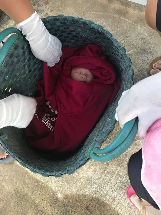 Bà Nguyễn Thị Cam (38 tuổi), lúc đó mở cổng nhà thì phát hiện một chiếc giỏ xách màu xanh nên kiểm tra thì phát hiện bên trong có một bé trai sơ sinh, được quấn trong chiếc áo gió màu đỏ.