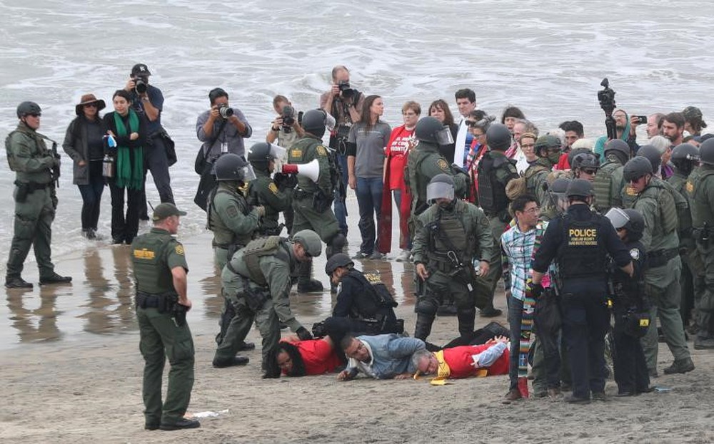 Theo hăng thông tấn Reuters, 32 nhà hoạt động đă bị bắt giữ tại San Diego gần bức tường biên giới Mỹ-Mexico ngày 10/12 khi họ tham gia một cuộc tuần hành nhằm ủng hộ đoàn người di cư đến từ Trung Mỹ. (Nguồn ảnh: Reuters)