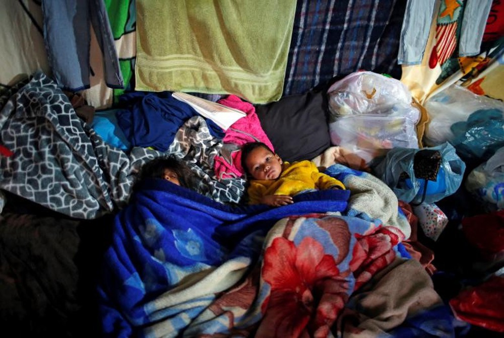 Những em nhỏ di cư nằm nghỉ trong khu lán trại đông đúc, chật chội ở Tijuana ngày 8/12