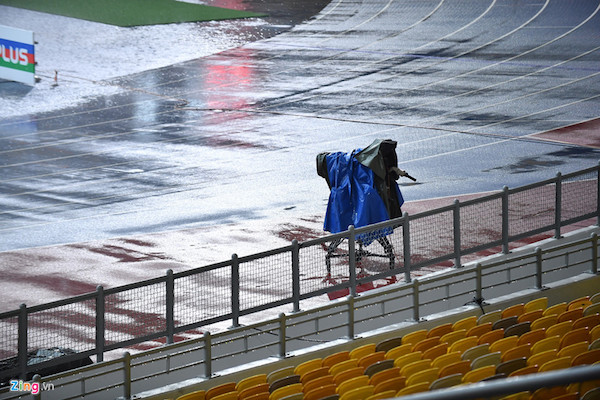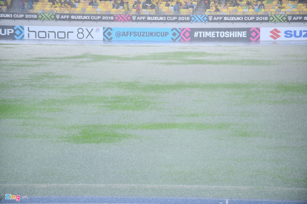 Tại sân vận động Bukit Jalil ở Malaysia, nơi diễn ra trận chung kết lượt đi AFF Cup giữa đội tuyển Việt Nam và Malaysia. Trời bất ngờ đổ cơn mưa kéo dài đã khiến mặt sân vận động ướt sũng.