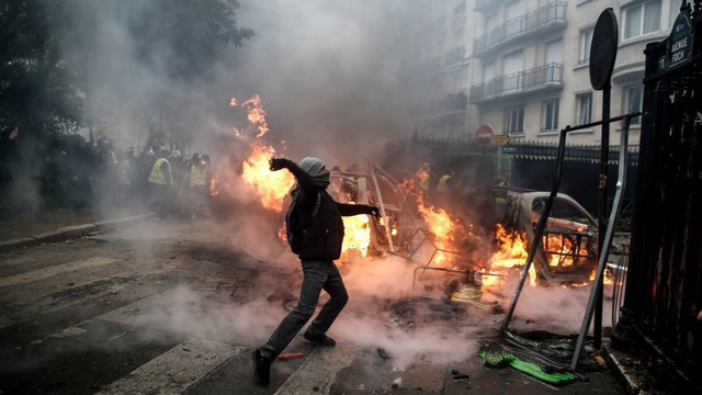 Người biểu tình đụng độ với cảnh sát tại Paris. (Ảnh: AFP)