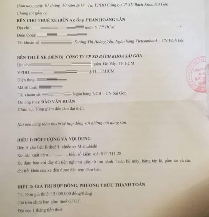 Cách đây 3 tháng, vợ chồng anh Lân làm hợp đồng cho Công ty Cổ phần xây dựng bách khoa Sài Gòn, do ông Đào Văn Huân làm Tổng giám đốc với giá 15 triệu đồng/tháng.
